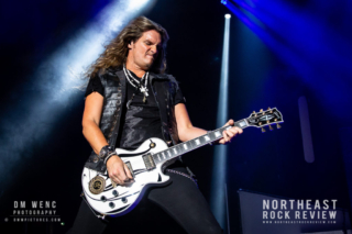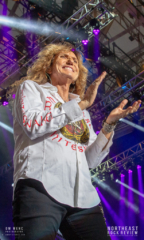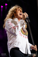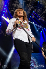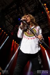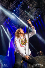 Then the night of music moved along slow and easy… Not really, nothing would be slow and easy with a David Coverdale Whitesnake performance. Whitesnake took the stage at dusk and straight out of the gate it was all high energy with David Coverdale and his lineup of amazing musicians. Quite possibly one of the best musician lineups of the past forty year Whitesnake timeline. This crew has been touring with Coverdale for the past three tours, including this one. Coverdale and company hit the stage with the crowd roared. Joel Hoekstra on guitar, was as animated and high energy as could be. He owned his side of the stage and out into the crowd. Hoekstra would join Reb Beach on guitar at center of the stage throughout the night which included dueling guitar solos. Beach and Hoekstra are a phenomenal combination of musicans. Both are in a mix of other separate musical projects over the years, but the combination of the two of them in Whitesnake hit the mark. Hoekstra is awesome to watch perform. The show was a homecoming for bassist Michael Devin, who has been with the band since 2010. Devin hails from the Leominster, Mass area. On the drums is longtime Whitesnake fixture, Tommy Aldridge, who has no shortage of power and awe on the drums. Michele Luppi was to the right of the stage on keyboards, a guy who keeps the keys and smiles going all night long. Everyone on the Whitesnake stage looked as if they were having a blast up there, and who wouldn’t.
